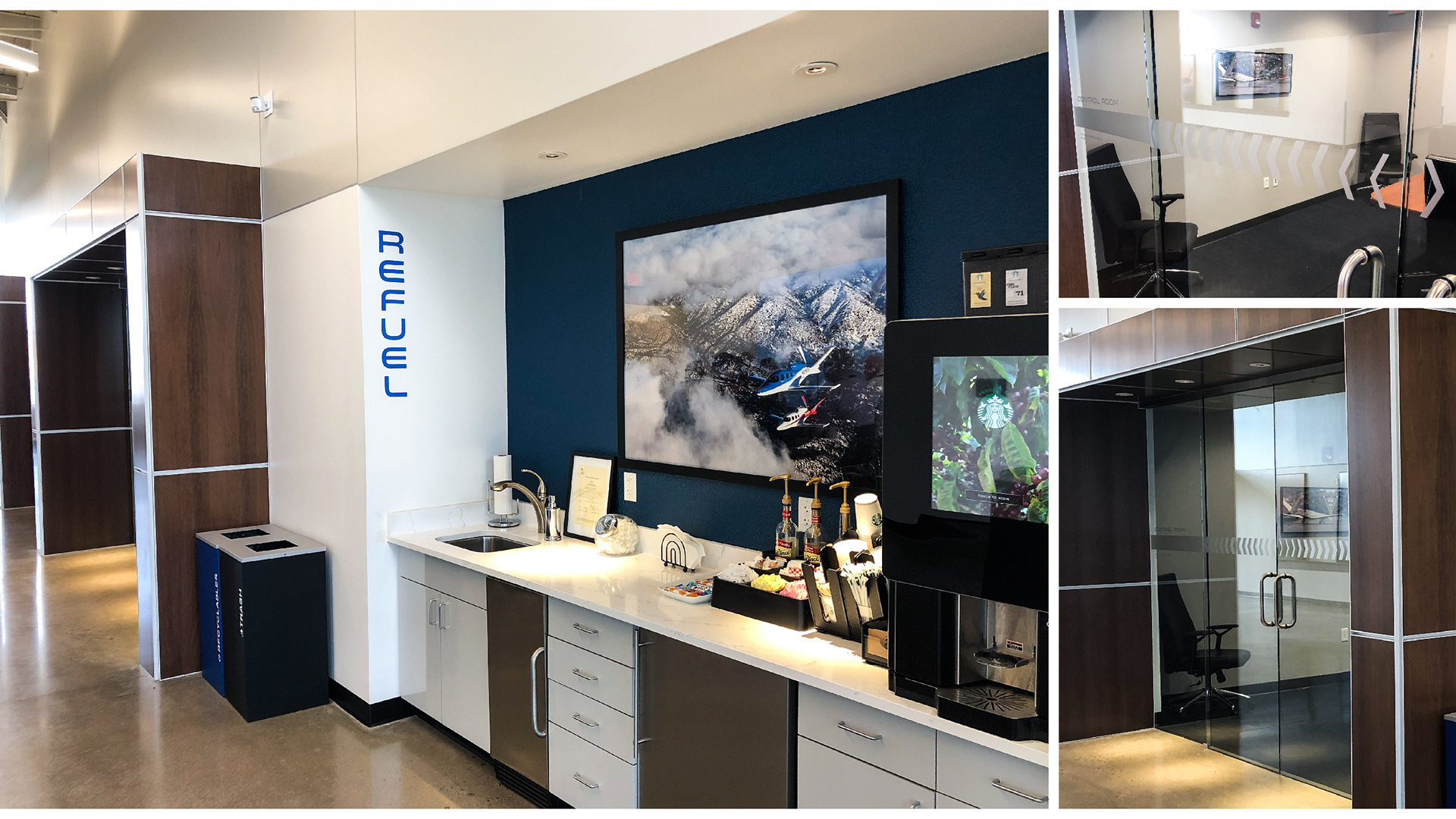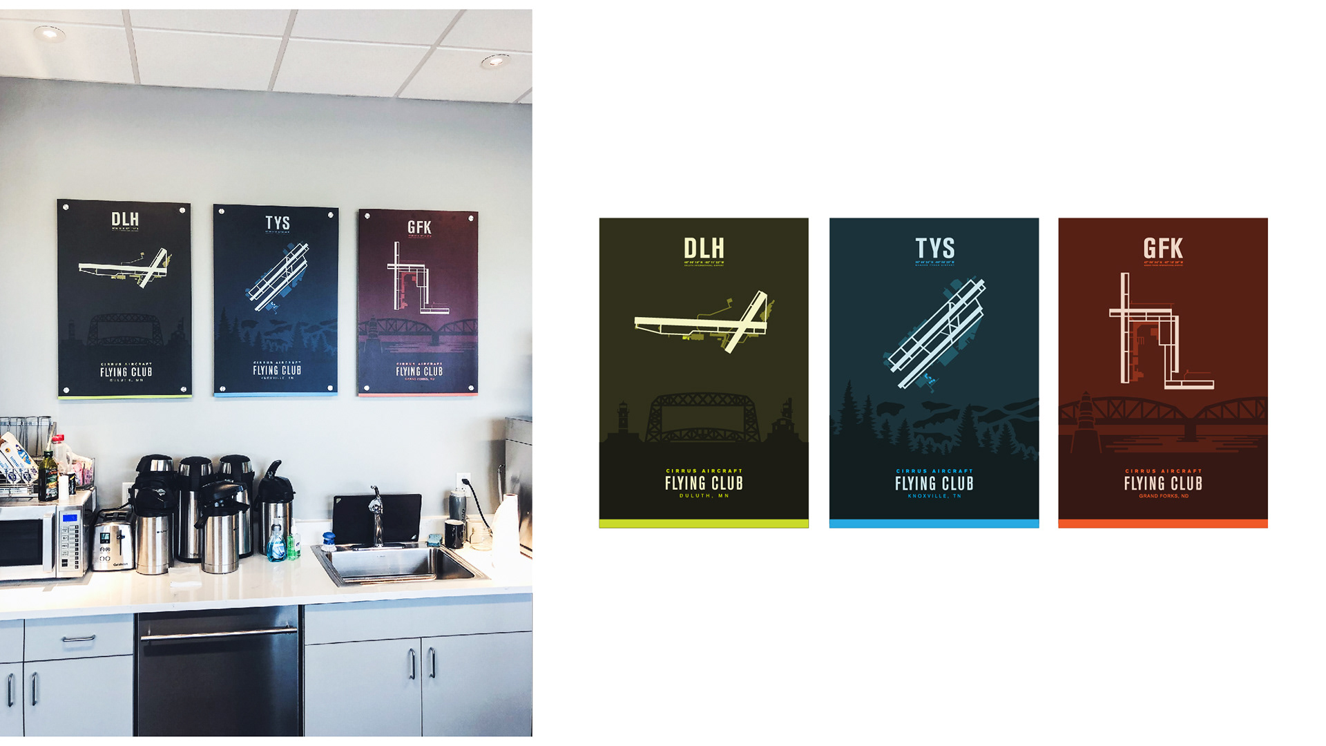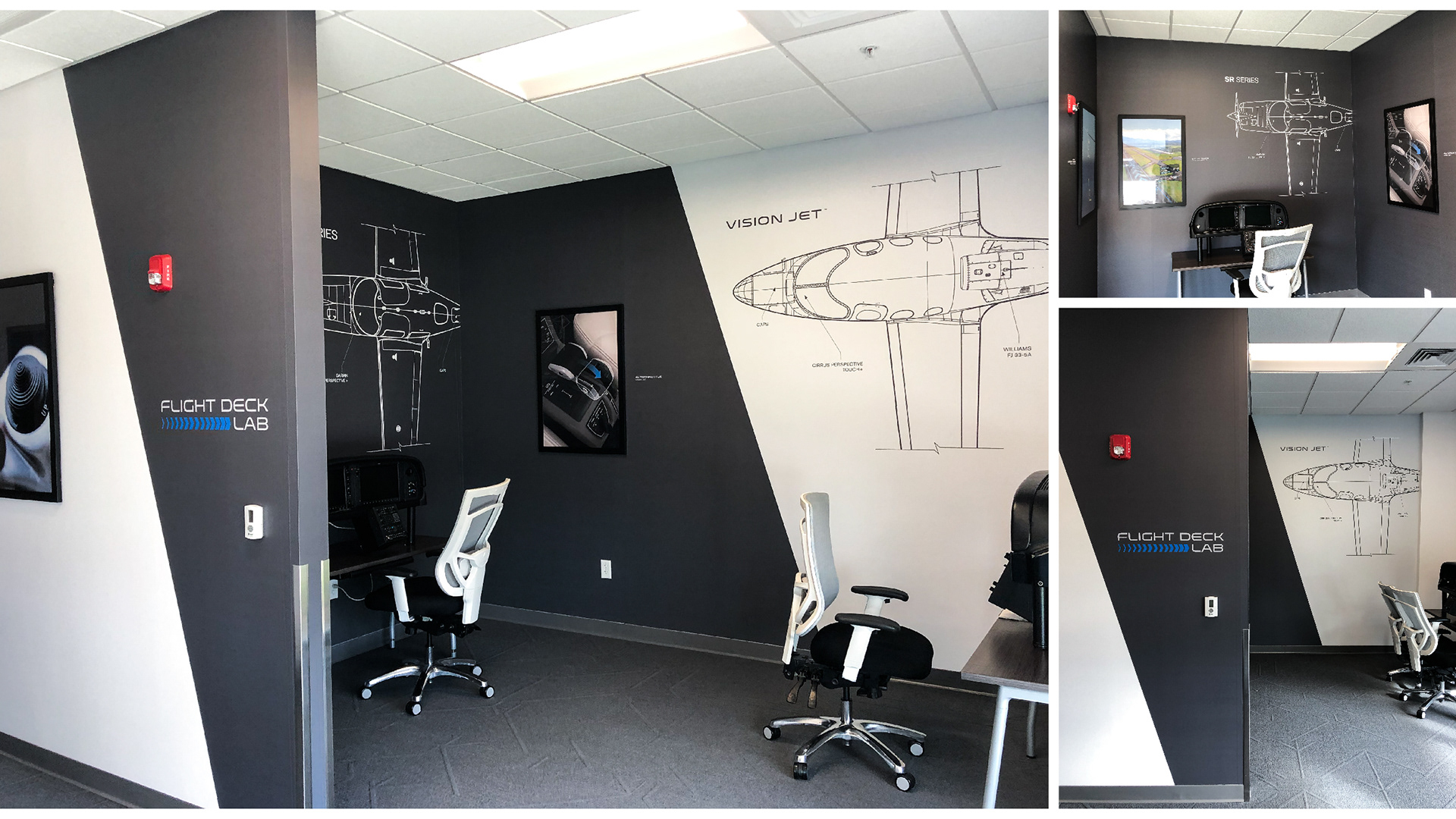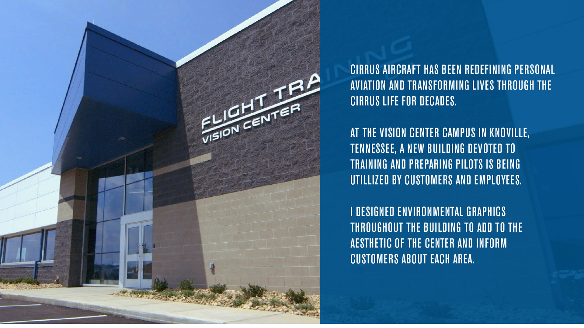 Environmental graphics for Cirrus Aircraft's Flight Training Center in Knoxville, Tennessee.