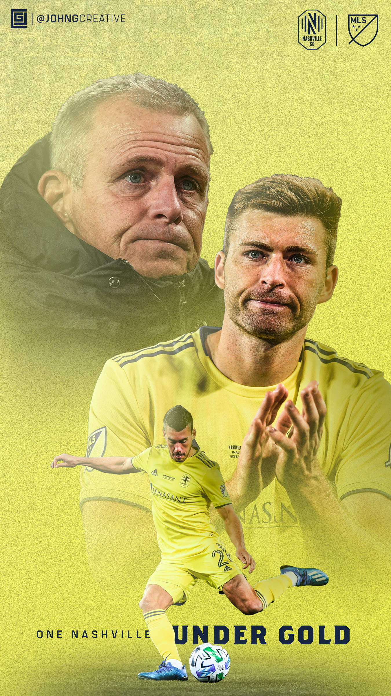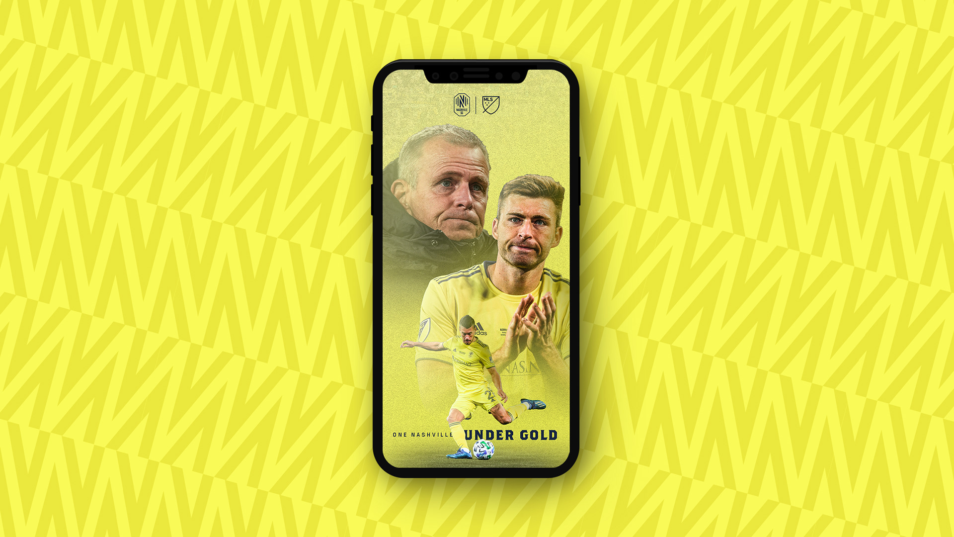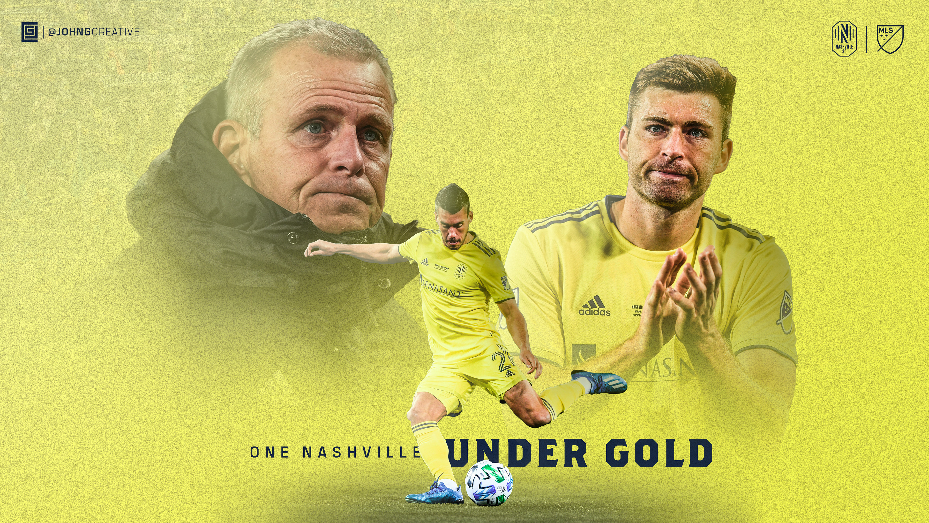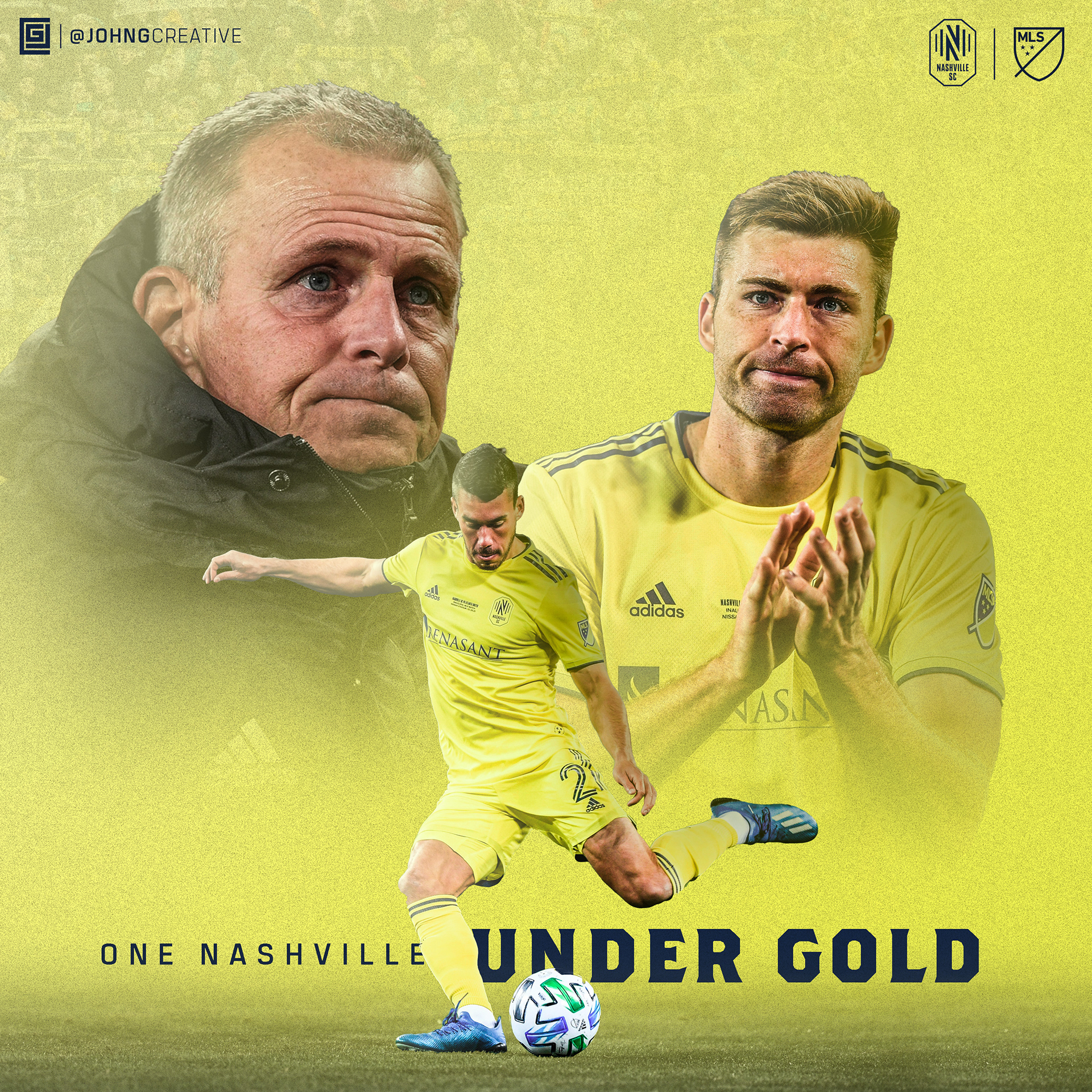 Social graphics using imagery from Nashville SC's home opener and their motto "One Nashville Under Gold".